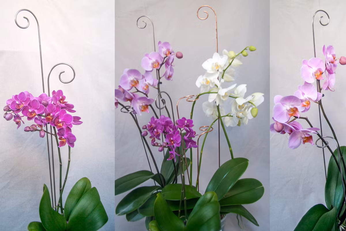 Exempel bild på kruka med orkide. Passar många olika växter som stöd eller som dekoration i krukan eller att hänga någon liten dekoration i till jul, påsk, vardag eller fest. Exempelbild visar även annan modell och storlek för inspiration.