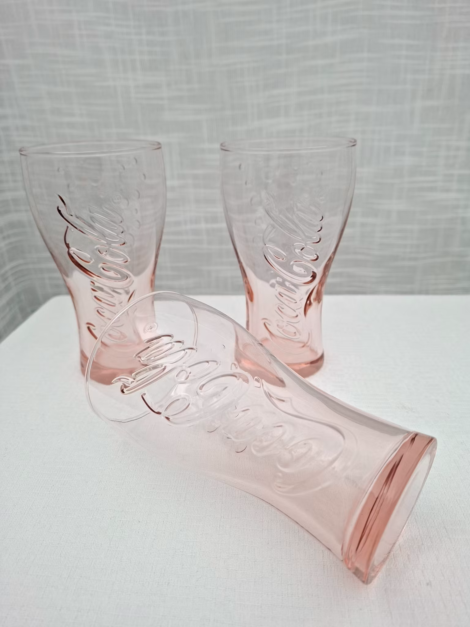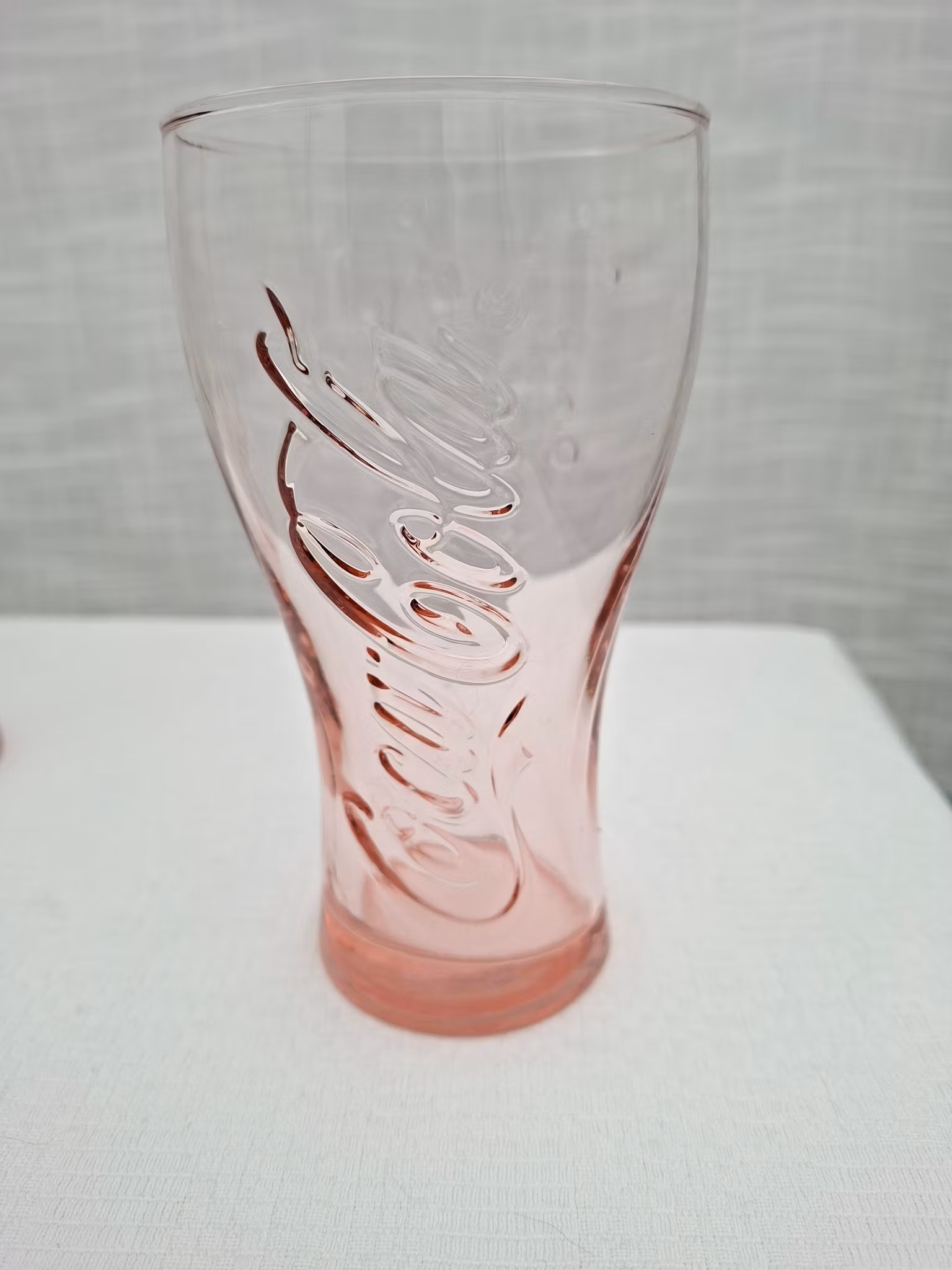 1 st Coca Cola glas Rosa med relieffint skickSäljes styckevis