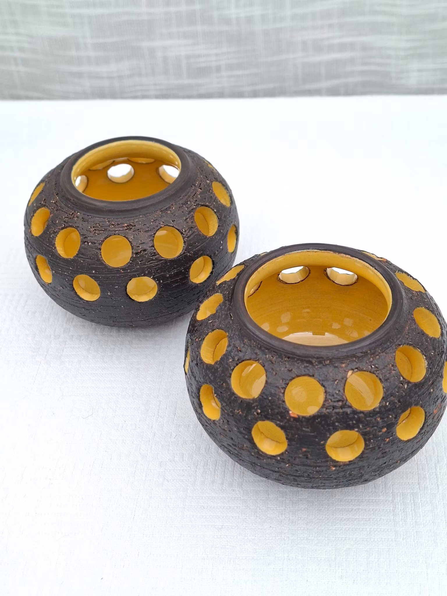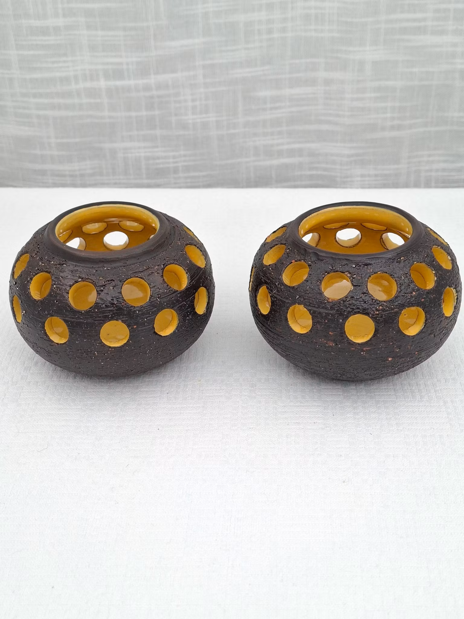 Ljuslyktor 2 st Gabriel keramik Kjell Blomberg Höjd ca 7 cmBruksskick, något lite skav på glasyren här och där. se bilder.Sitter en limmad skyddstass på undersi