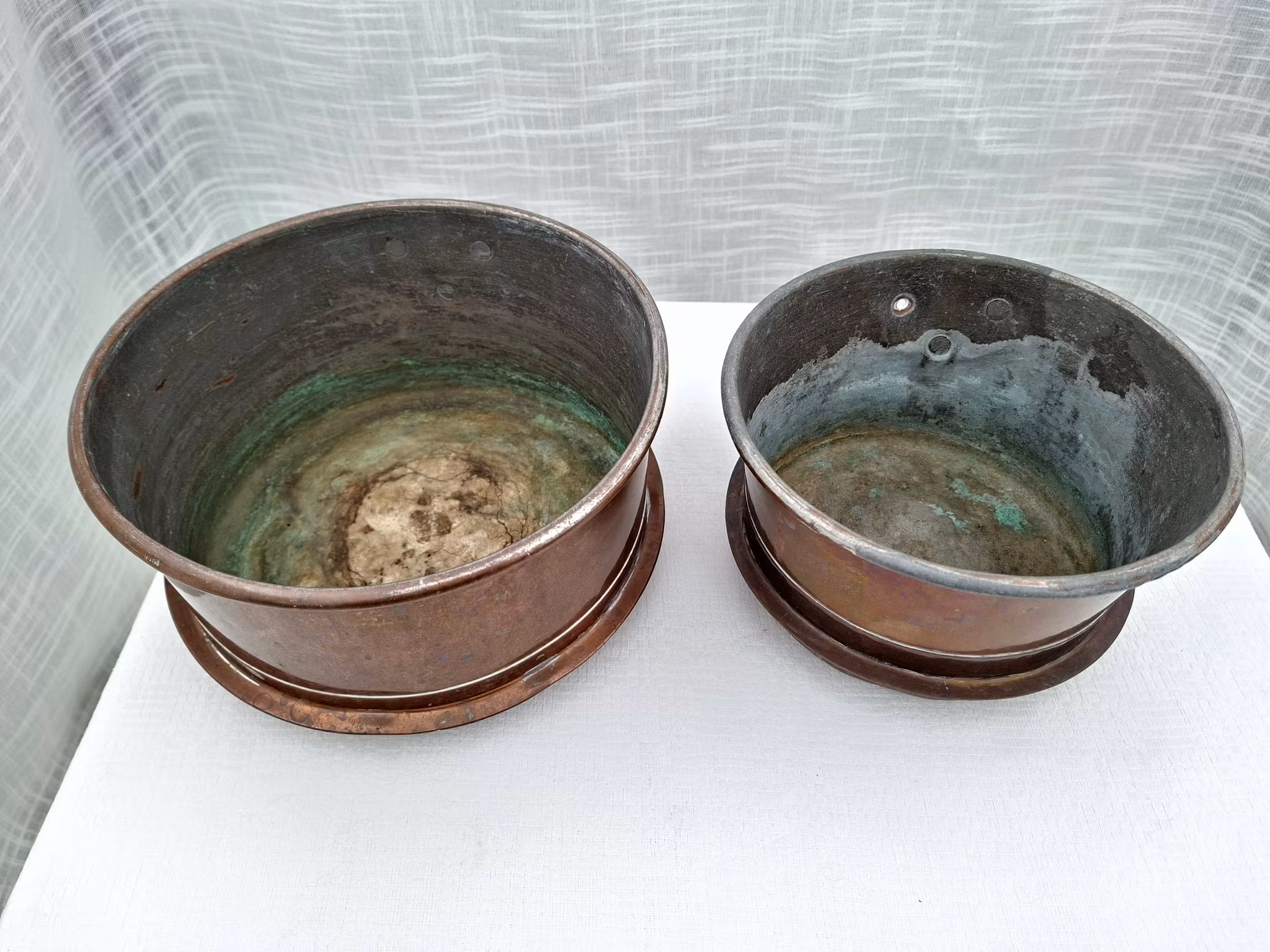 2 st koppar krukor av återbrukade kopparkastruller