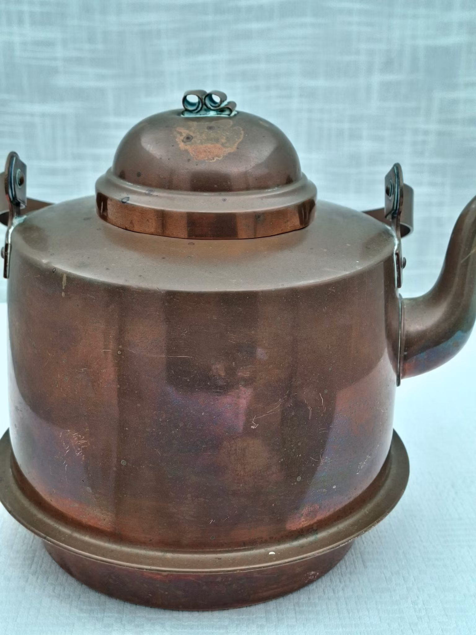 Kaffepanna i koppar märkt Eskilstuna 2,5 literHöjd kaffekanna ca 15 cm utan locket Bruksskick, någon buckla, märke