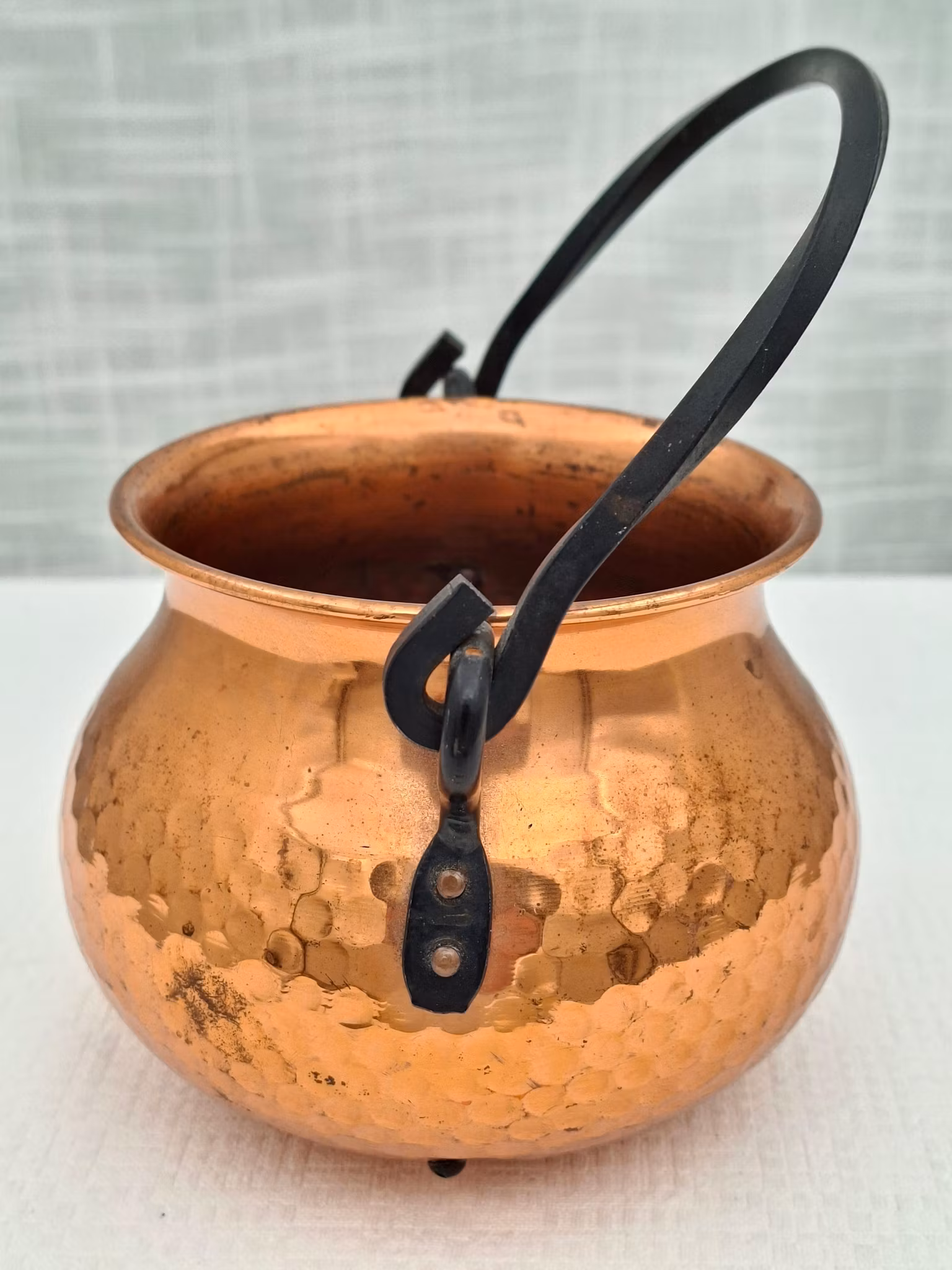 Koppar liten kruka ampel kopparkruka med smideshandtagSöt liten hamrad kopparkruka / koppar ampel kruka för en liten växtHöjd ca 9 cm diameter öppningen ca 9 cm