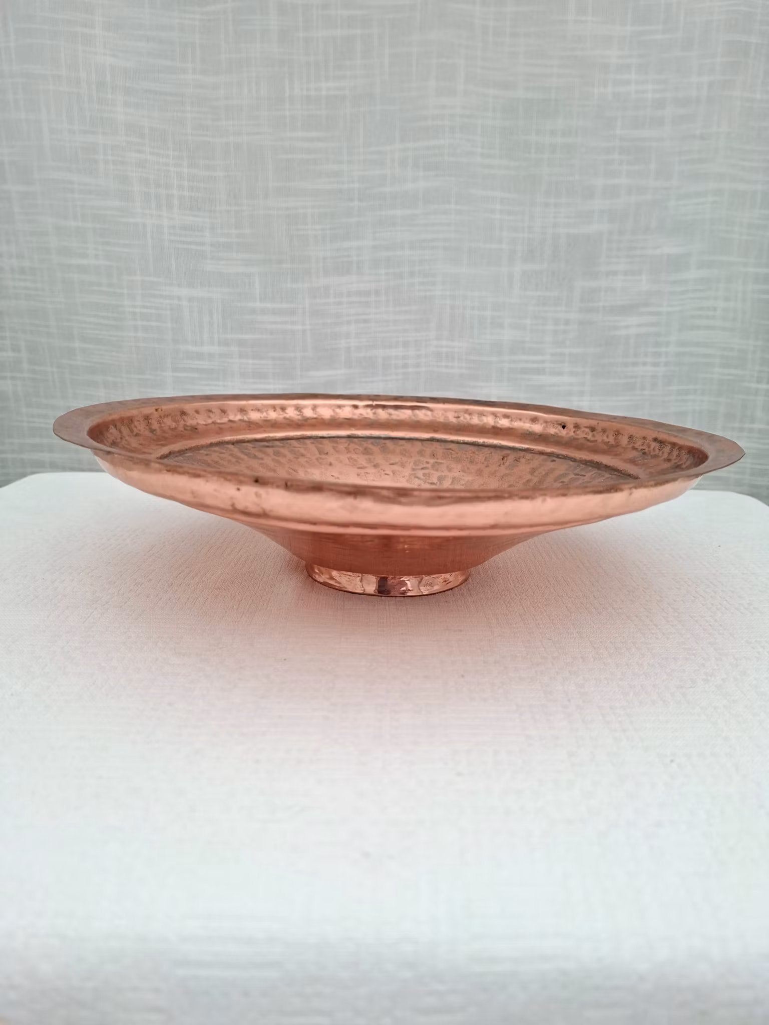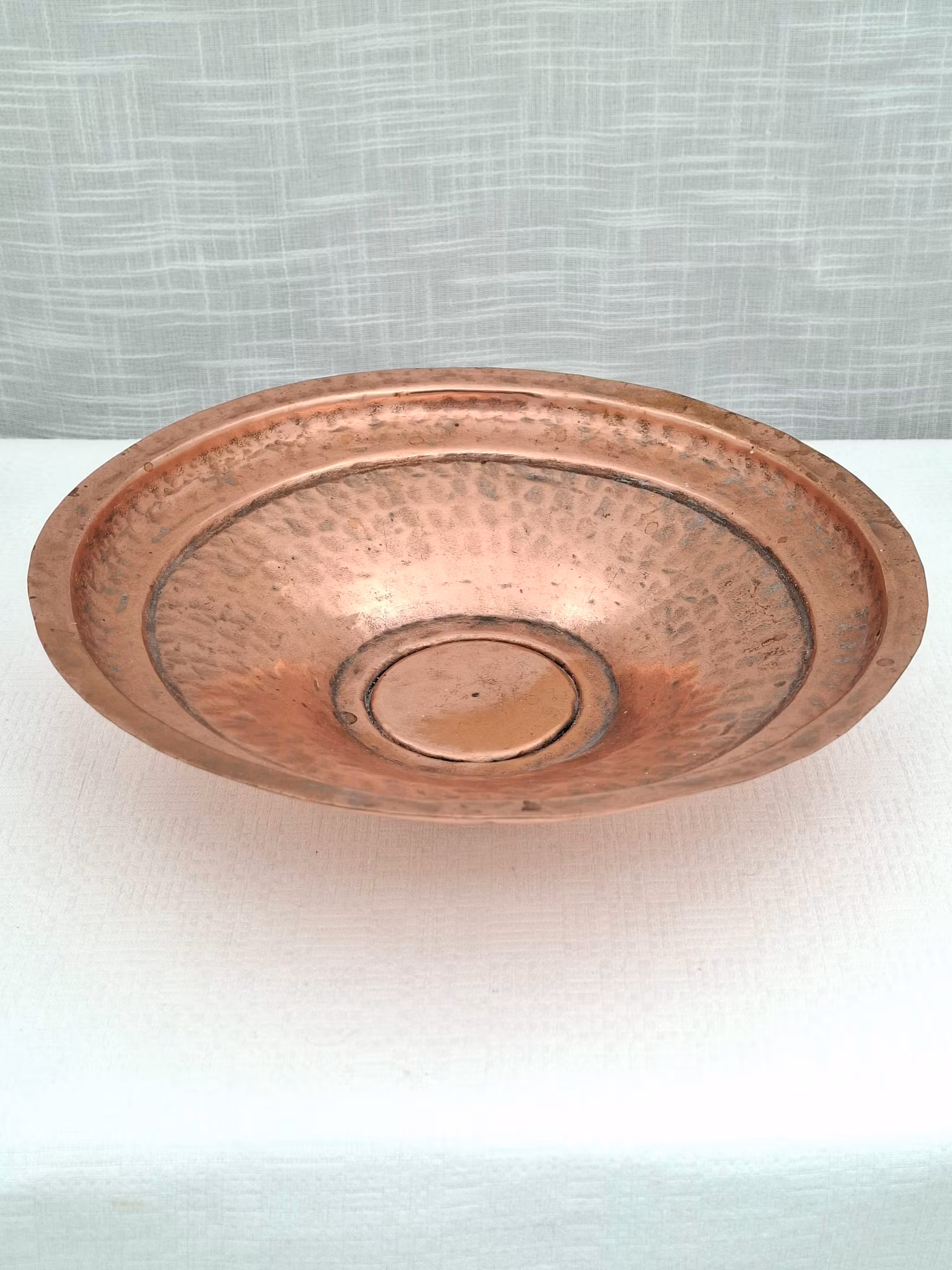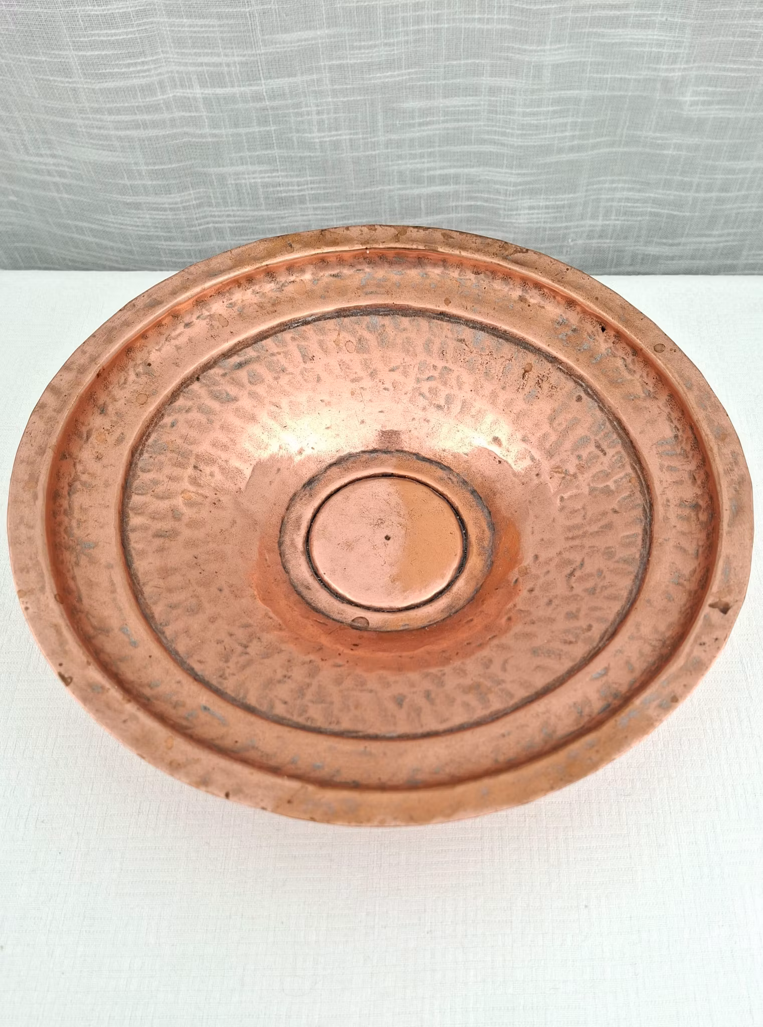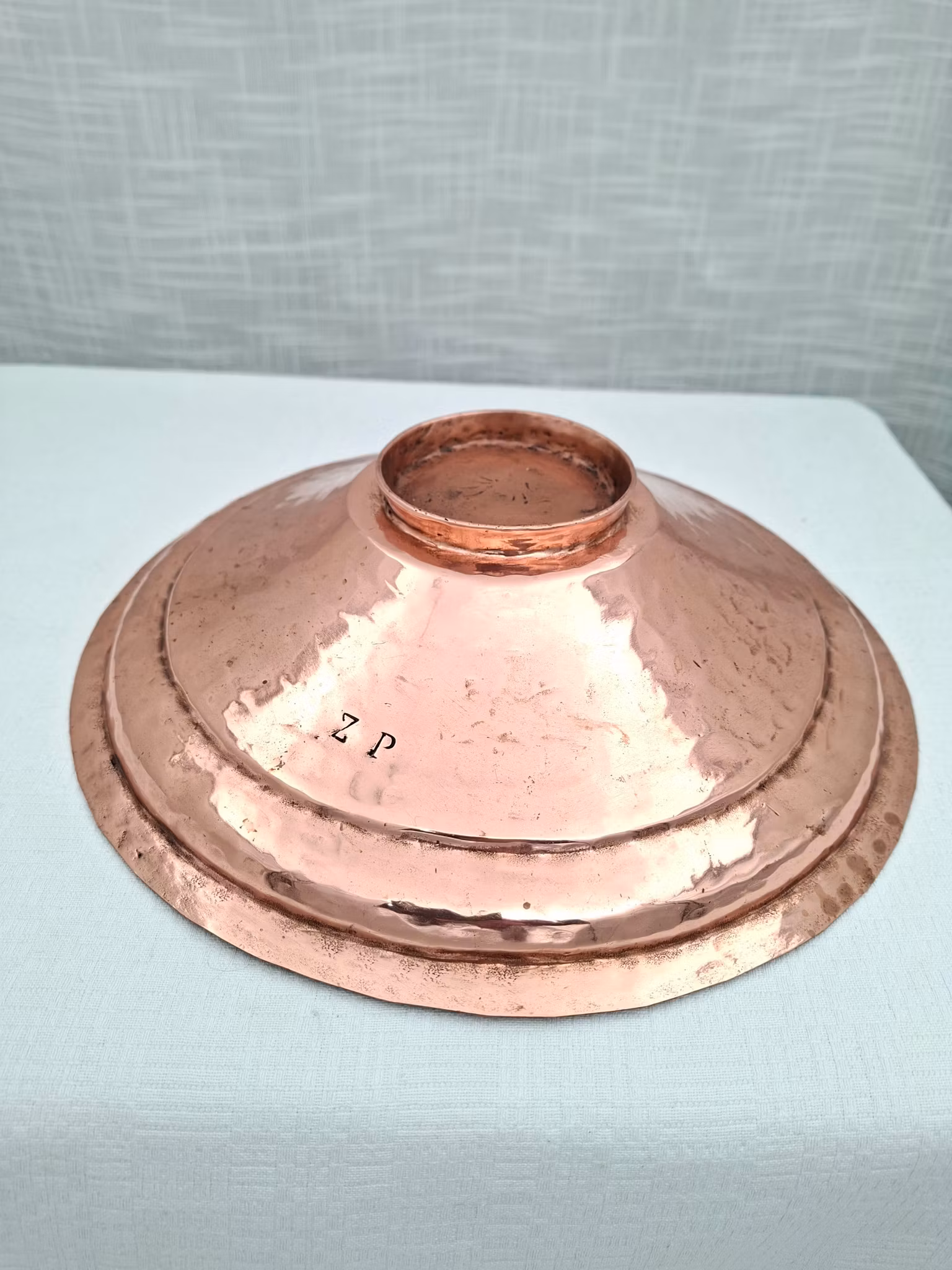 Kopparfat hammrad skål i koppar märkt Z P28 cm diameter 7 cm hög oputsad bruksskickStämpel Z P