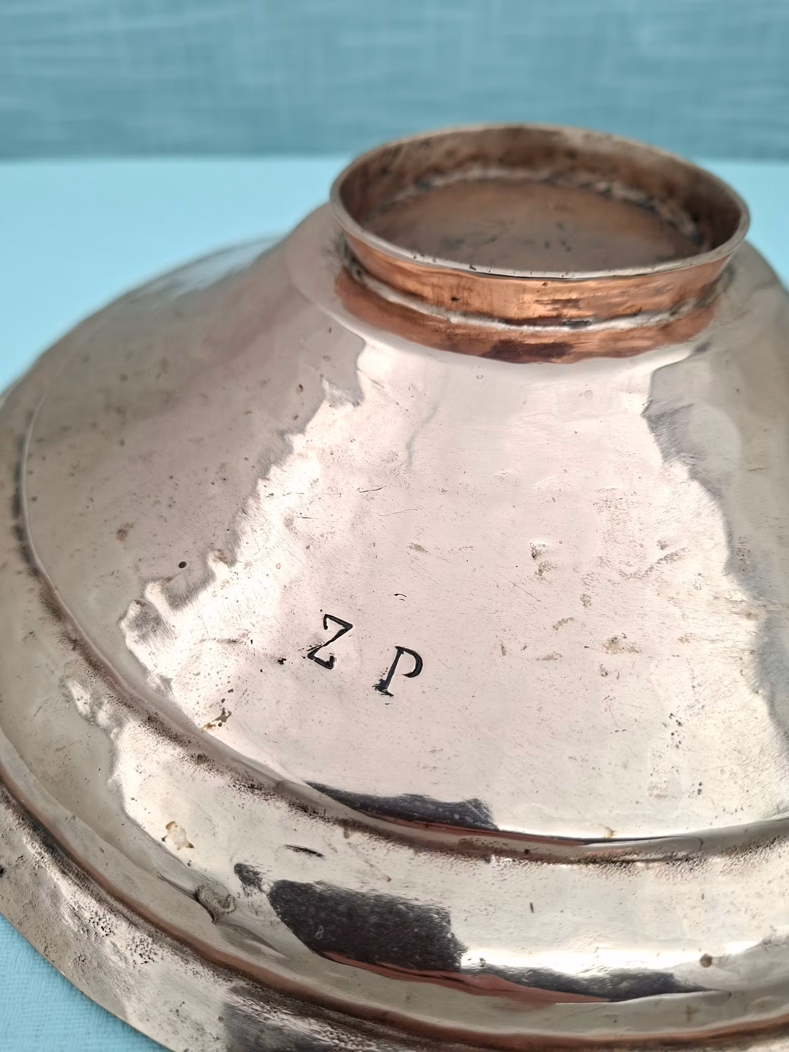Kopparfat hammrad skål i koppar märkt Z P