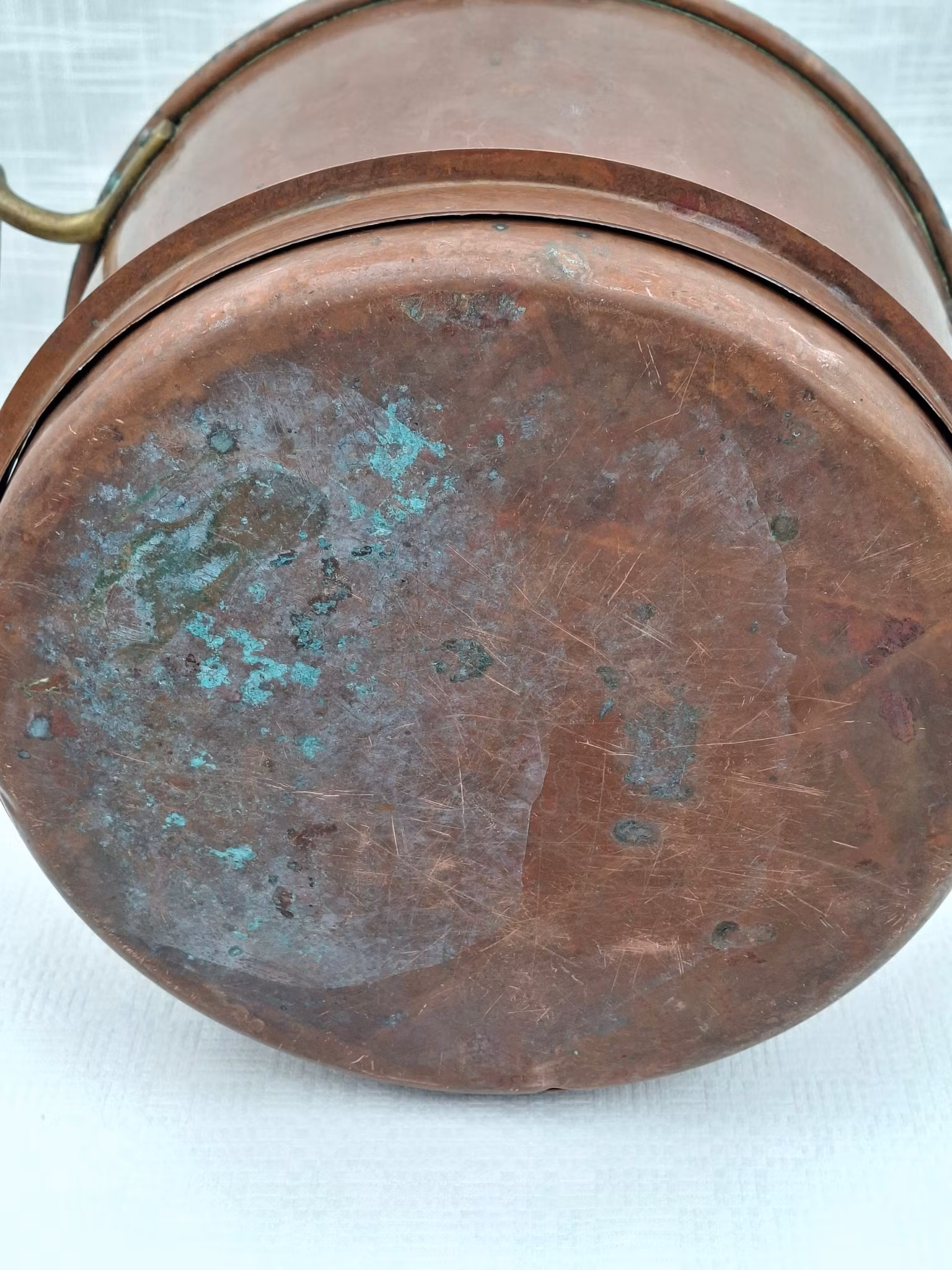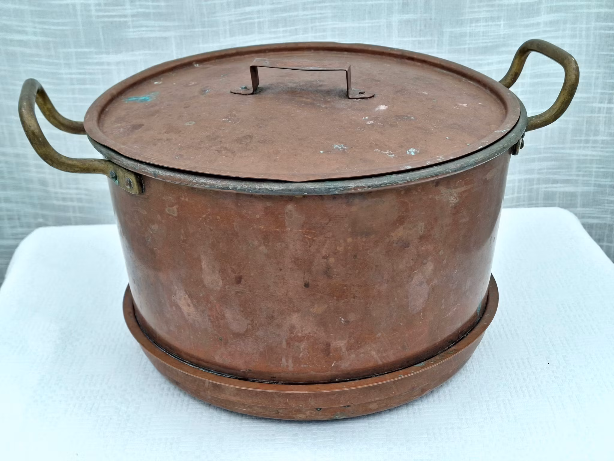 Koppargryta med lock och ring äldre koppar gryta bunke