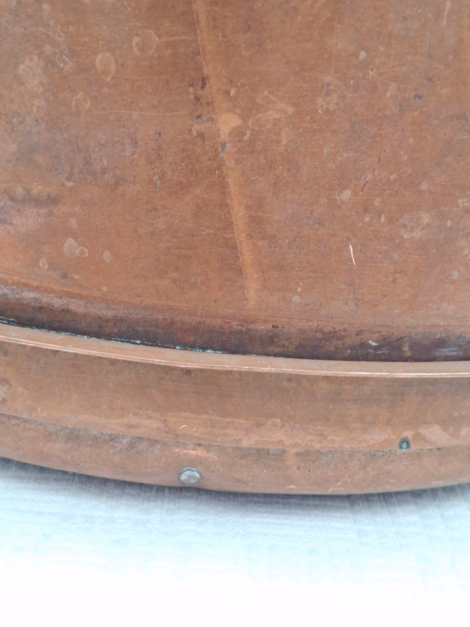 Koppargryta med lock och ring äldre koppar gryta bunkeKoppargryta äldre gryta med lock och avtagbar ring.Oputsad, använt bruksskick.Diameter ca 26,5 höjd ca 16,