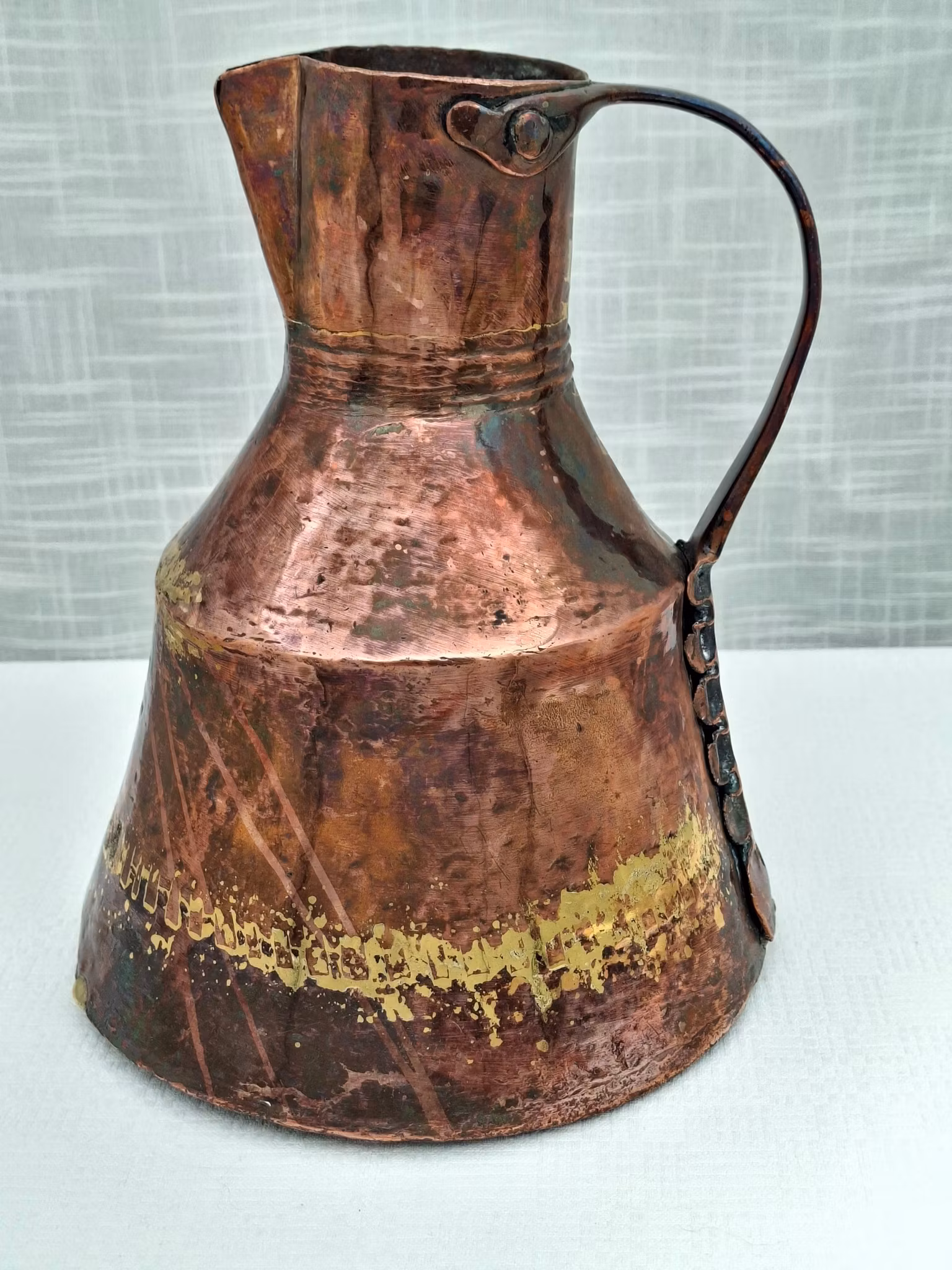 Kopparkanna antik från 1800-talet kanna i kopparÄldre kanna i koppar från 1800 talet. Fint gammalt hantverk i fint bruksskick. Höjd ca 24 cm
