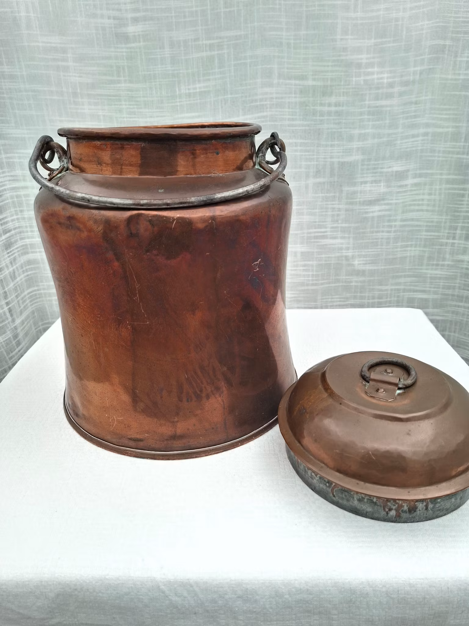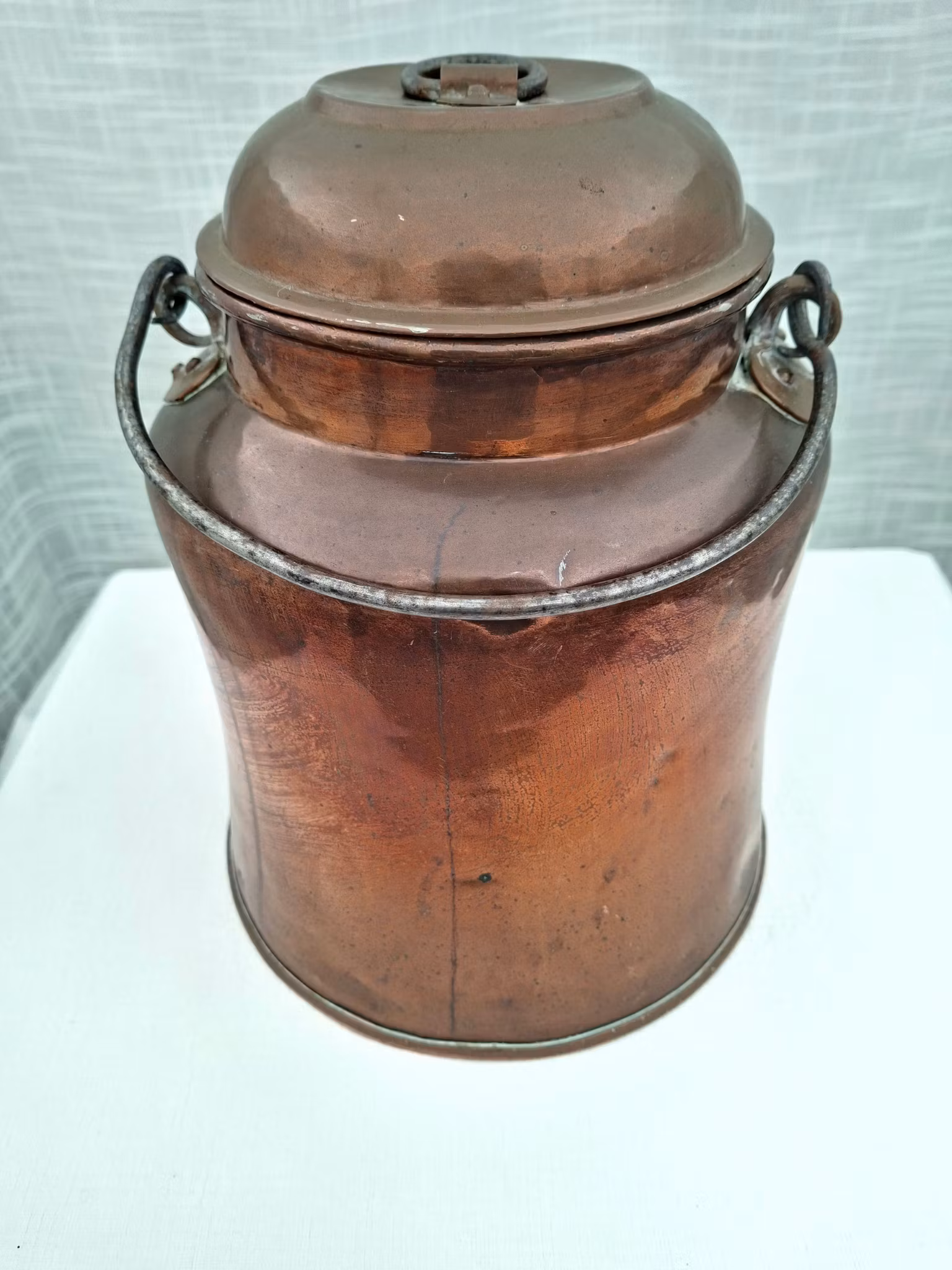 Mjölkkanna i koppar 29 cm hög äldre kopparmjölkkannaHöjd ca 29 cmFint bruksskick, någon små buckla.