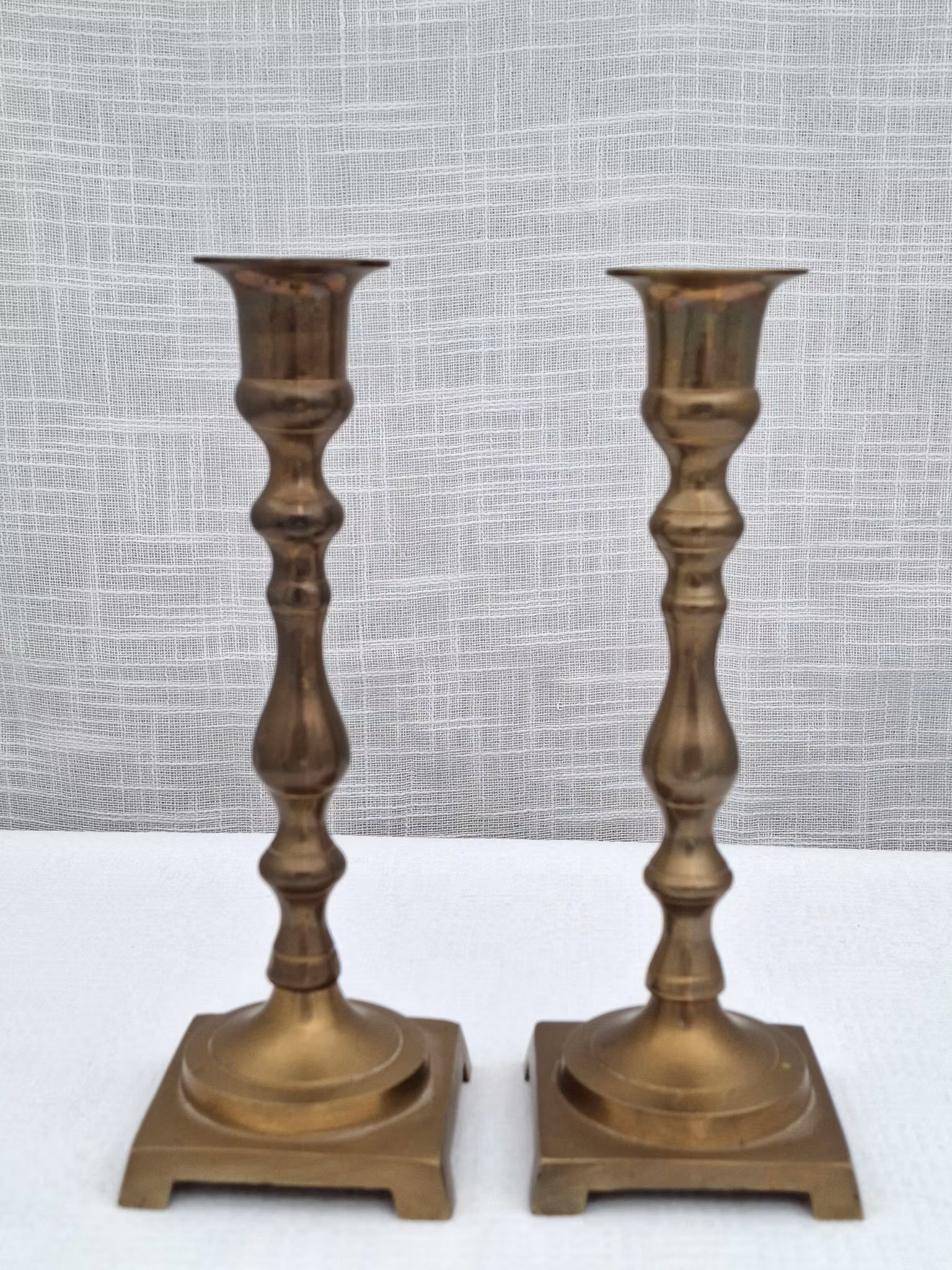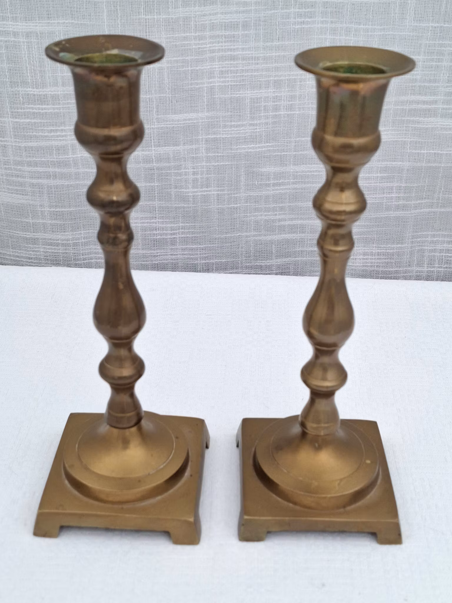 Mässingsljusstakar ett par ljusstakar i mässing19,5 cm högaBruksskick oputsade
