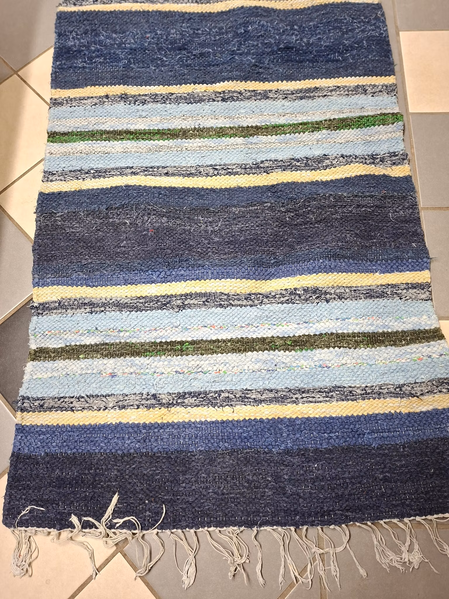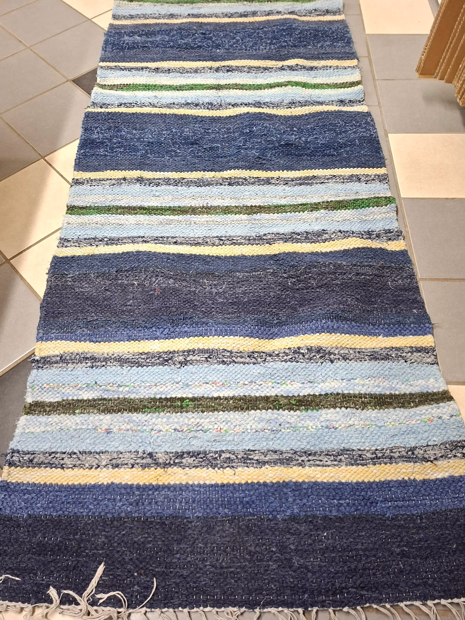 Trasmatta blå tjock och rejäl matta 210 cm x 67 cmBruksskick.Tvättad.