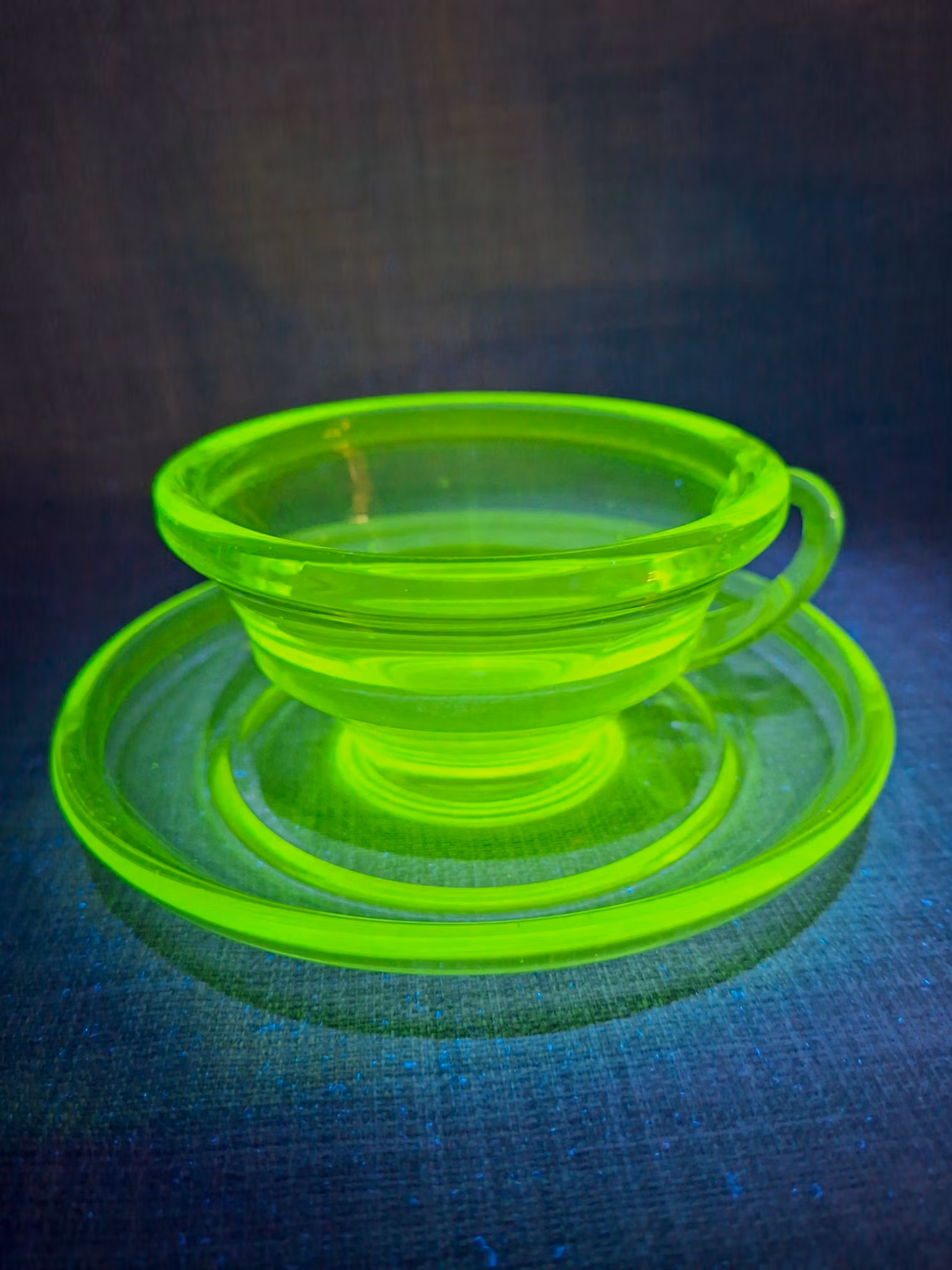 Uranglas te / kaffekopp med fat Gullaskruf Ring William Stenberg 1 st1 st kopp med fat från Gullaskruf från serien Ring design William StenbergPressglasAn